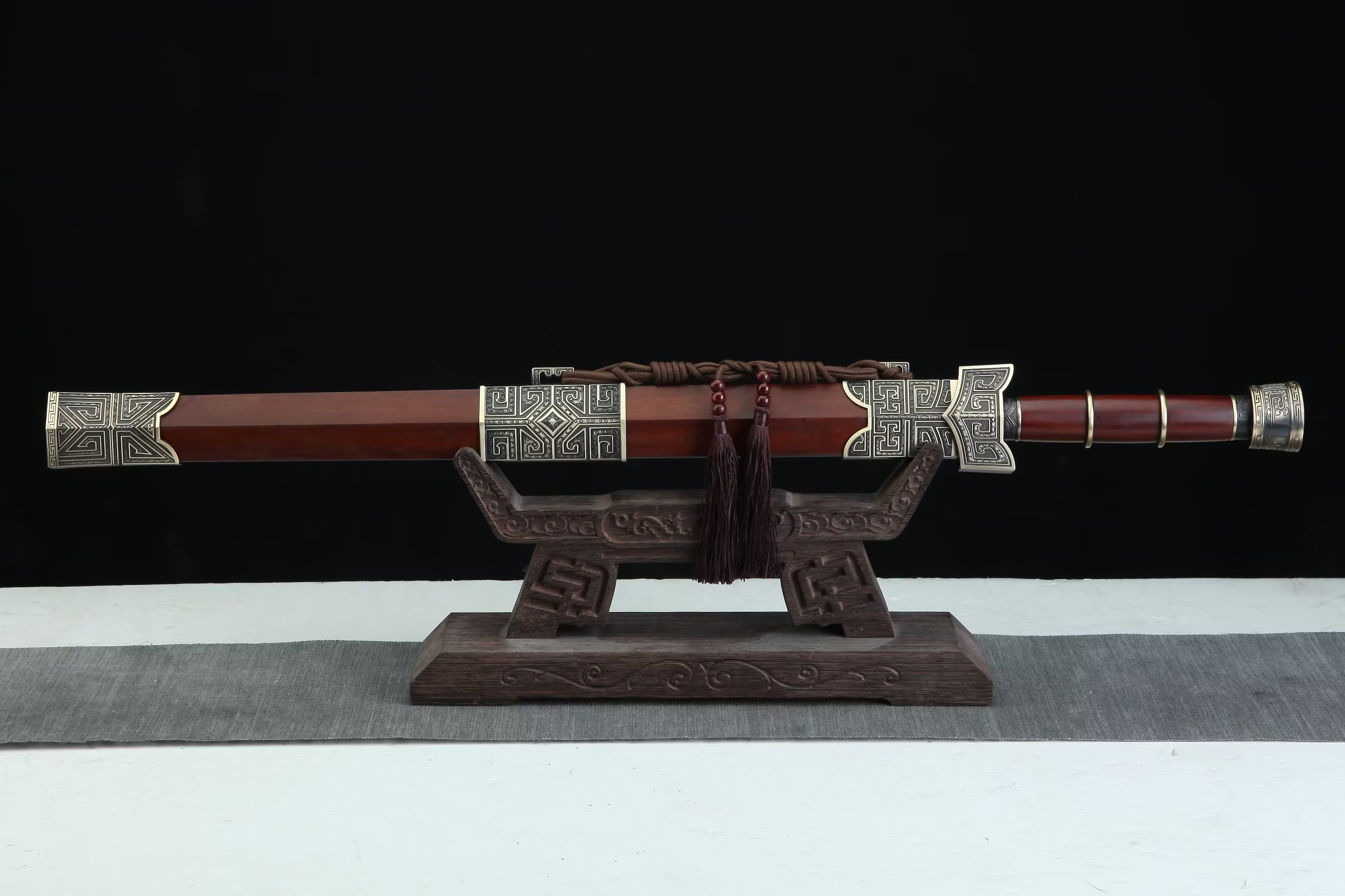 装貝:纯铜精雕、精细打磨、做旧;剑鞘:优质酸枝木;