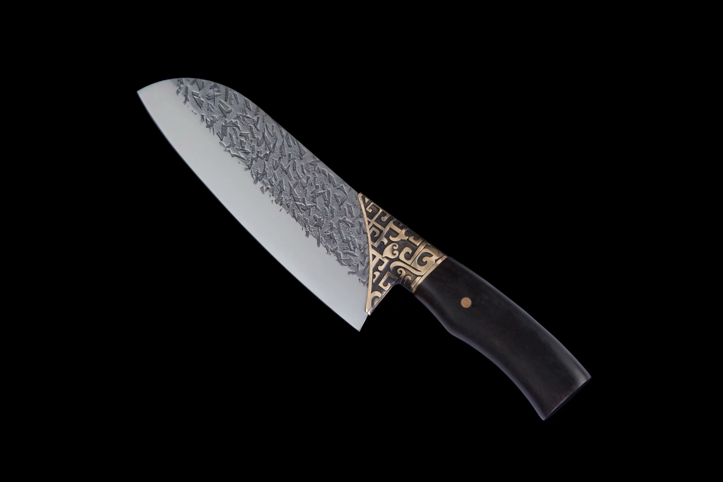 “日日切”大三德小厨刀—尖角纹(黑檀木柄)