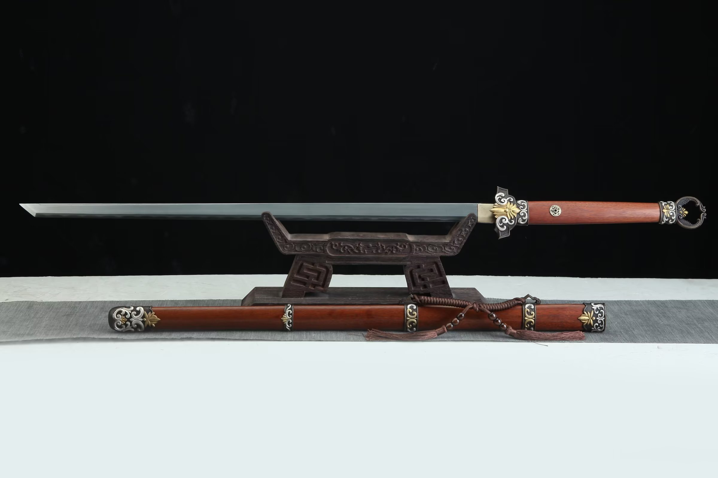 装貝:纯铜精雕、精细打磨、古法鎏金、银、铜三色;刀鞘:优质龙凤檀;