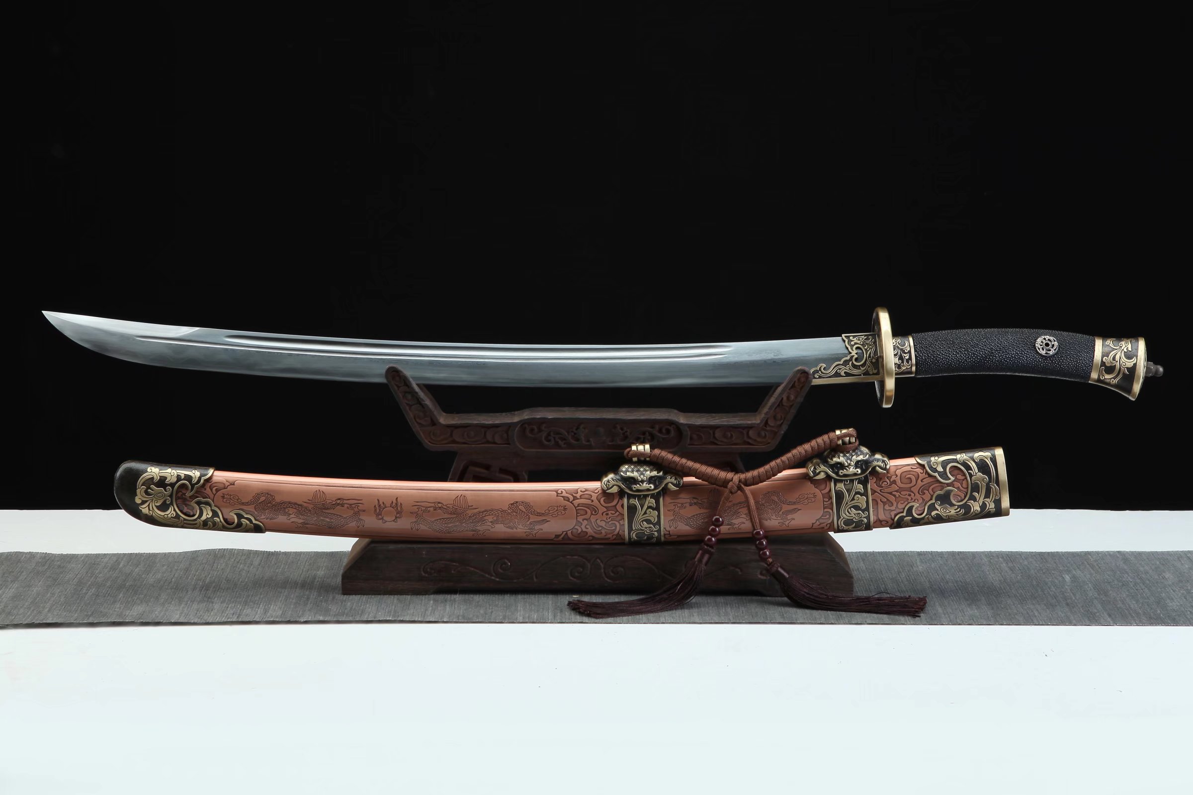 青龙宝刀—“双龙戏珠”紫铜鞘。
