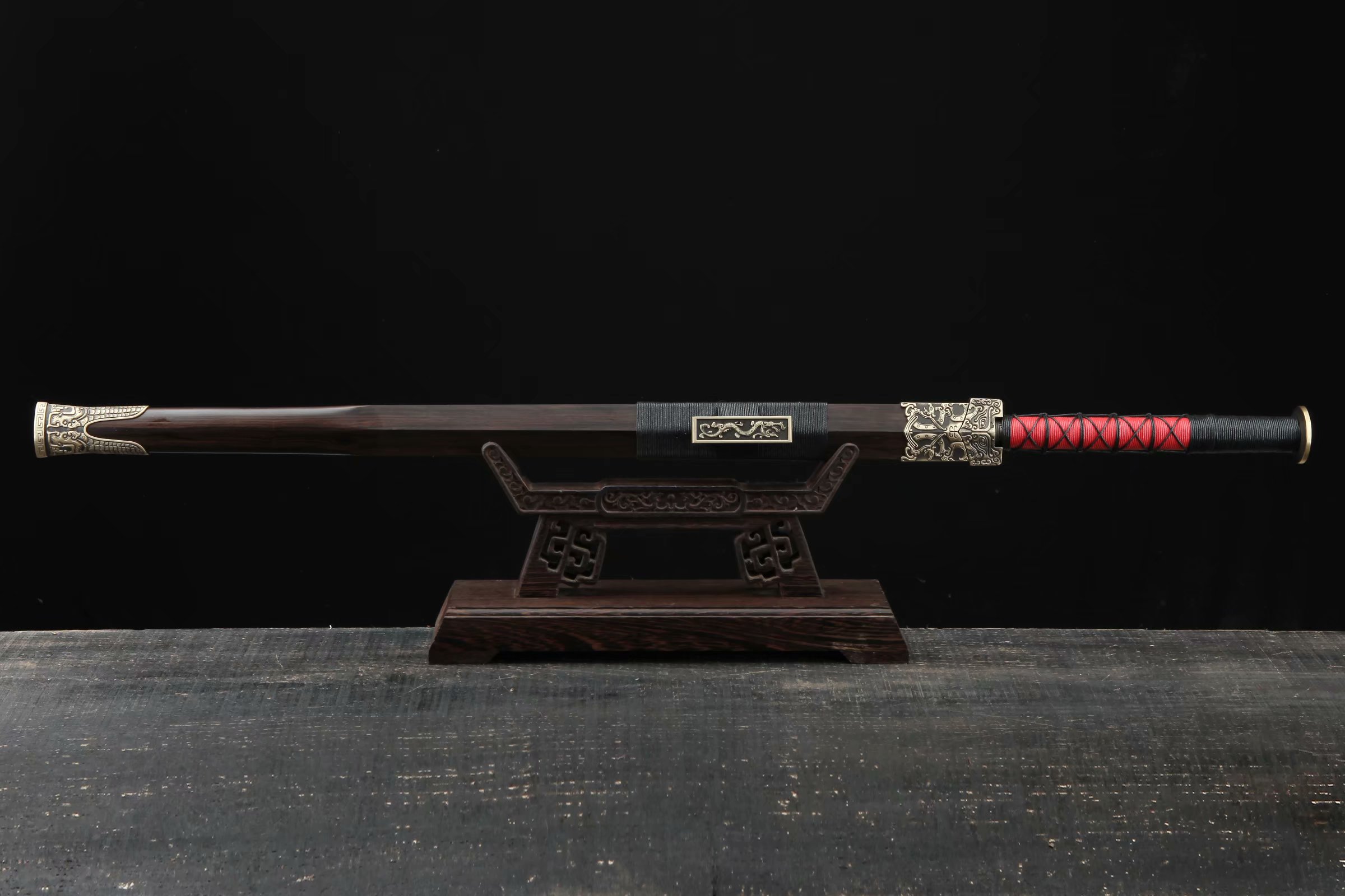 玄铁纹—开口龙汉剑。装貝:纯铜精铸、精细打磨、做旧;剑鞘:优质黑檀木;