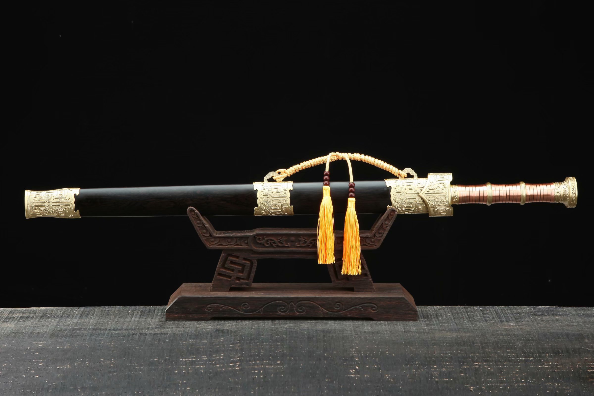 装具:纯铜精雕、精细打磨、亮铜;剑鞘:优质黑檀木;